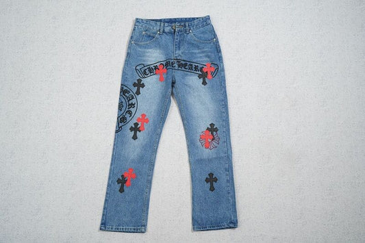Pantalones Chrome Hearts Jeans Cross Blanco/Azul